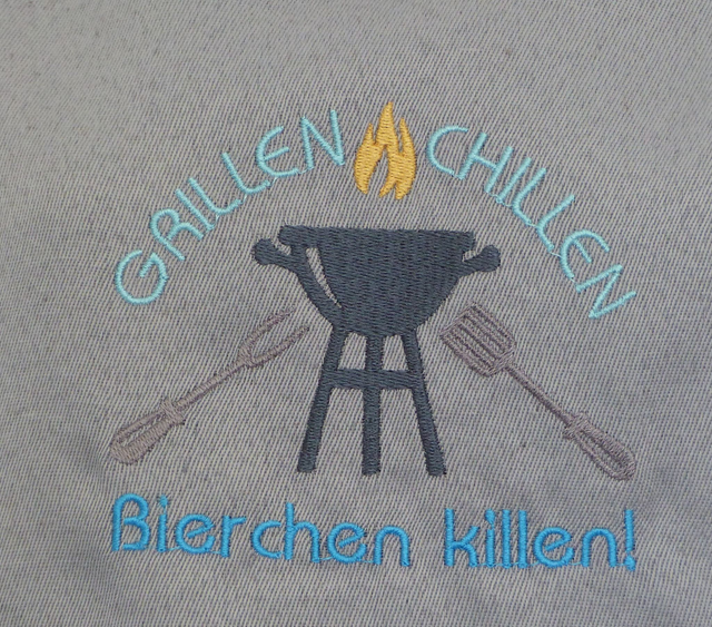 Schürze grau „ Grillen Chillen Bierchen killen“